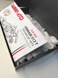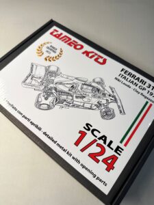 L’ultima novità di Tameo Kits è un modello in scala 1/24 della Ferrari 312T vincitrice del campionato mondiale nel 1975. La 312T non ha bisogno di presentazioni. Questa gloriosa vettura è una vera icona delle corse di Gran Premio, che ha segnato l’inizio della serie di grande successo 312 T e ha permesso a Niki Lauda di conquistare il suo primo titolo. Questo modello è stato annunciato per commemorare il 50° anniversario della vittoria di Lauda al Gran Premio d’Italia e presenta molte soluzioni innovative di progettazione e produzione per riprodurre fedelmente questa splendida vettura. Siamo molto orgogliosi di questo modello e confidiamo che i modellisti apprezzeranno la passione e l’impegno che abbiamo dimostrato nel realizzarlo. Apriamo la scatola e diamo un’occhiata…