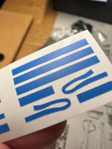 Le cinture di sicurezza sono fornite sotto forma di adesivi in vinile, pretagliati nella forma corretta e nel colore esatto.