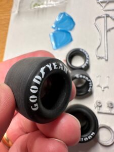 Infine, gli pneumatici. Anche questi sono completamente nuovi per questo modello e riproducono perfettamente la forma di quelli anteriori e posteriori. Il battistrada presenta una finitura leggermente consumata, mentre i loghi del produttore sono prestampati sui fianchi.